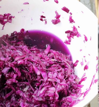 There are so many foods/recipes that may be fermented, but we will focus on one of the easiest for the home gardener to get started - and that is sauerkraut! Sauerkraut is a delicious food that should be consumed daily! Sauerkraut is rich in vitamins and minerals - vitamin C, vitamin K, copper, potassium, iron, and manganese. Sauerkraut contains enzymes that help break down foods into smaller molecules, making your food more bioavailable.